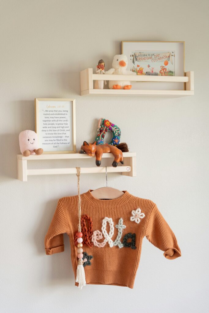 Another pro hack for your baby’s nursery is to label all the items in your child’s closet or clear bins. For example, you could label their toys, clothes, and supplies. Or leave them open-style if you want to spot items quickly.